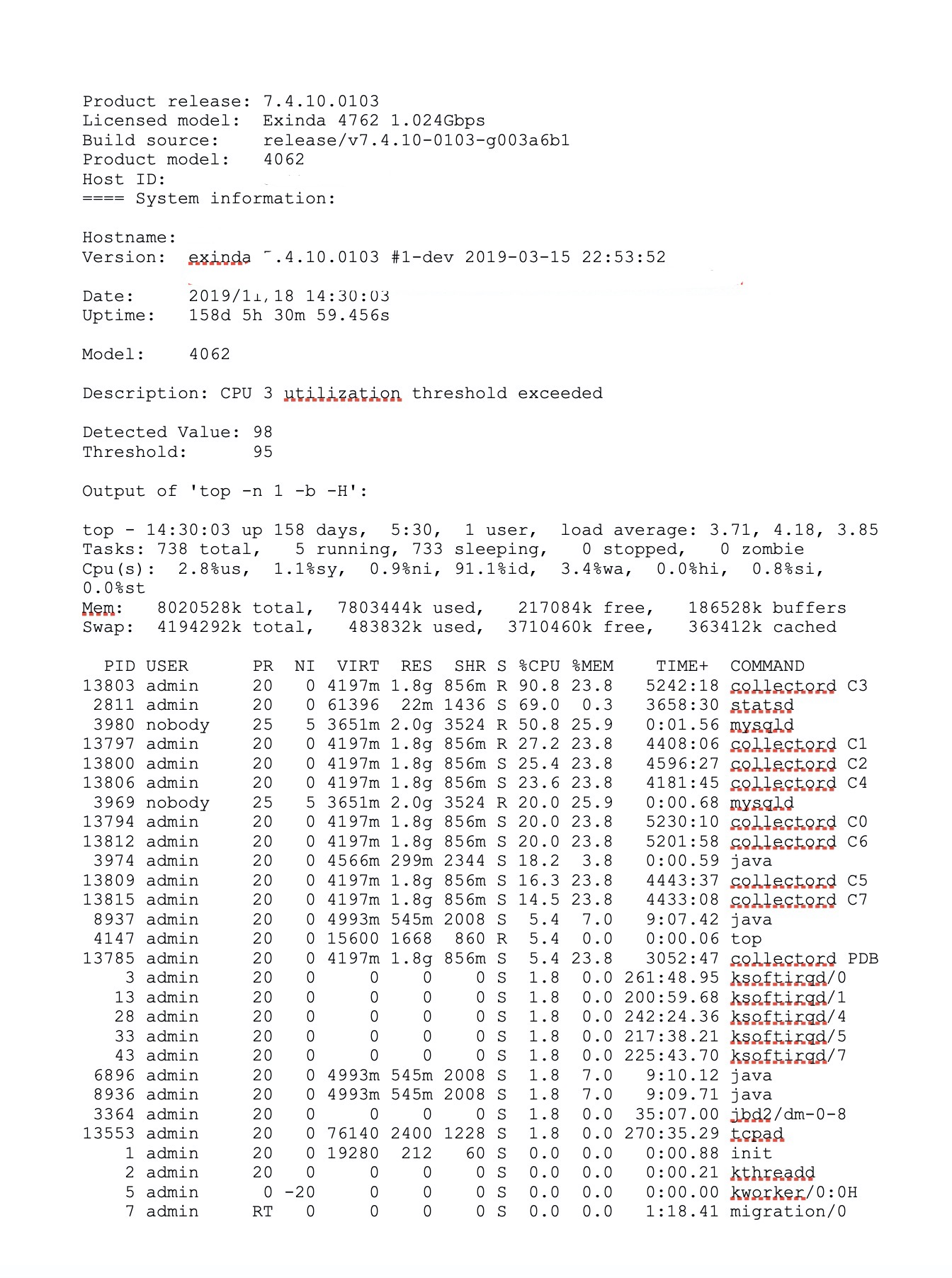 - Verbose Emails —Send detailed event emails to the user. The information included is based on the type of alerts generated and will include items such as Process List, CPU core utilization list, Memory paging details, packet drops, etc. Depending on the type of issue, appropriate information will be included. Refer to the Alerts section for which alerts are generated and email notifications are sent.